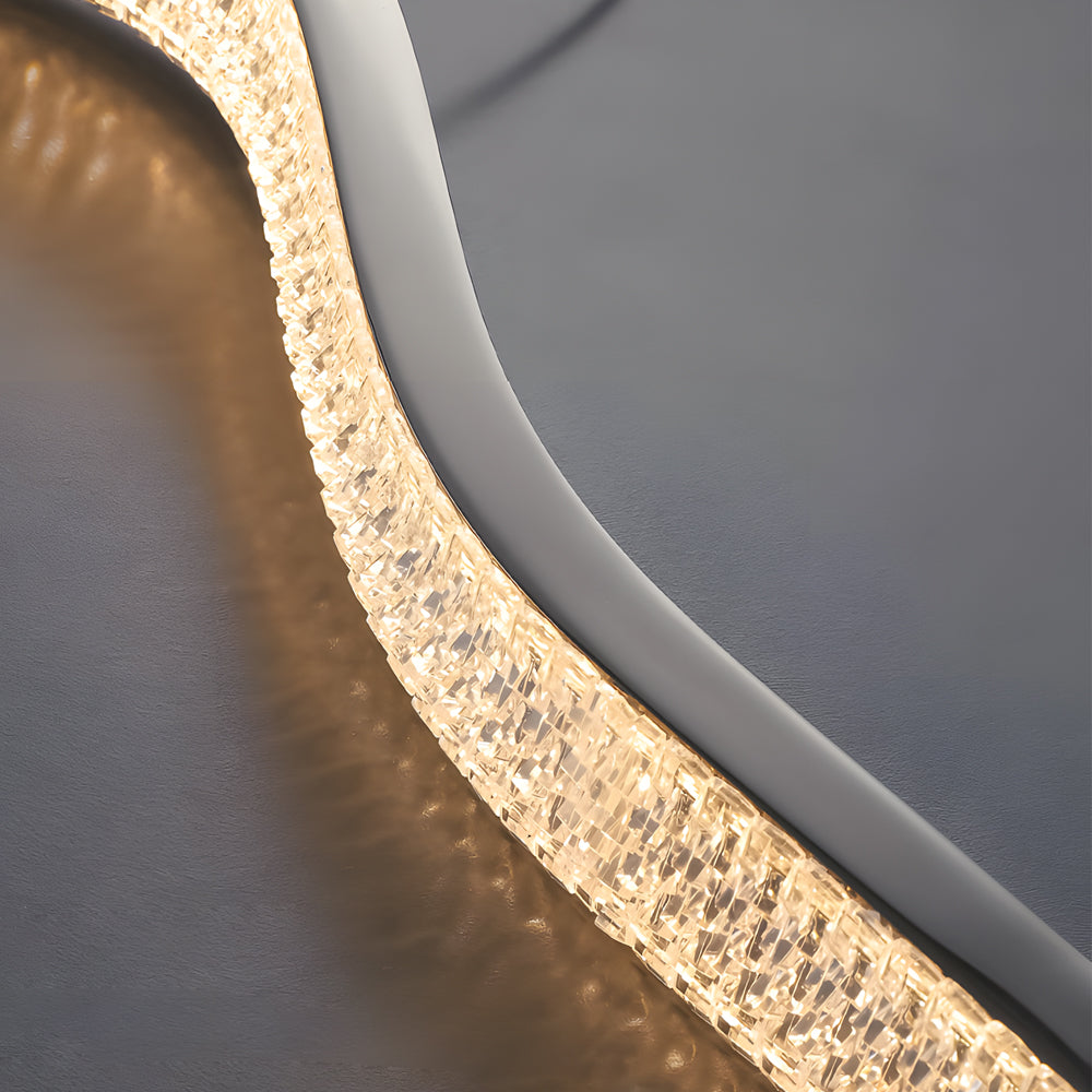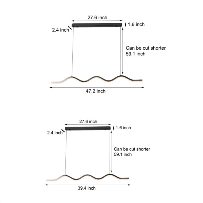 - Bring an edgy look to a kitchen or entertaining space with this modern linear wave pendant that features a wave ribbon silhouette. Pushing the boundaries of chic contemporary design, this beautiful fixture offers a series of decor choices. Embrace the ribbon-wave shape of its electroplating black finish metal lamp with an artistic cut crystal-like acrylic lampshade. Hang with black wires, this black wave linear metal island pendant sets an elegant appeal in modern room design.