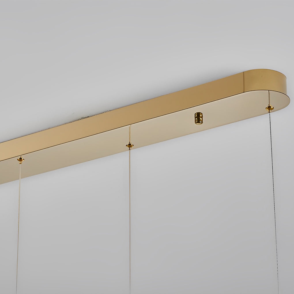 - This creative long strip chandelier is made of high grade stainless steel and crystal material, which is rustproof and non deformable. It can illuminate the whole room for you with 360° lighting, which is an excellent choice for lighting and decoration.