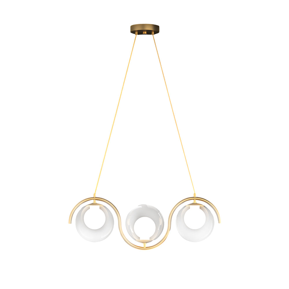 - The interplay of wavy metal frames and glass balls creates a visual symphony that elevates any space with artistic flair. This island light fixture is composed of quality iron and glass material and is available in two exquisite shade designs. You can choose the timelessly elegant white glass, or choose another double-layered shade with an outer layer of clear glass and a small white glass inner layer.