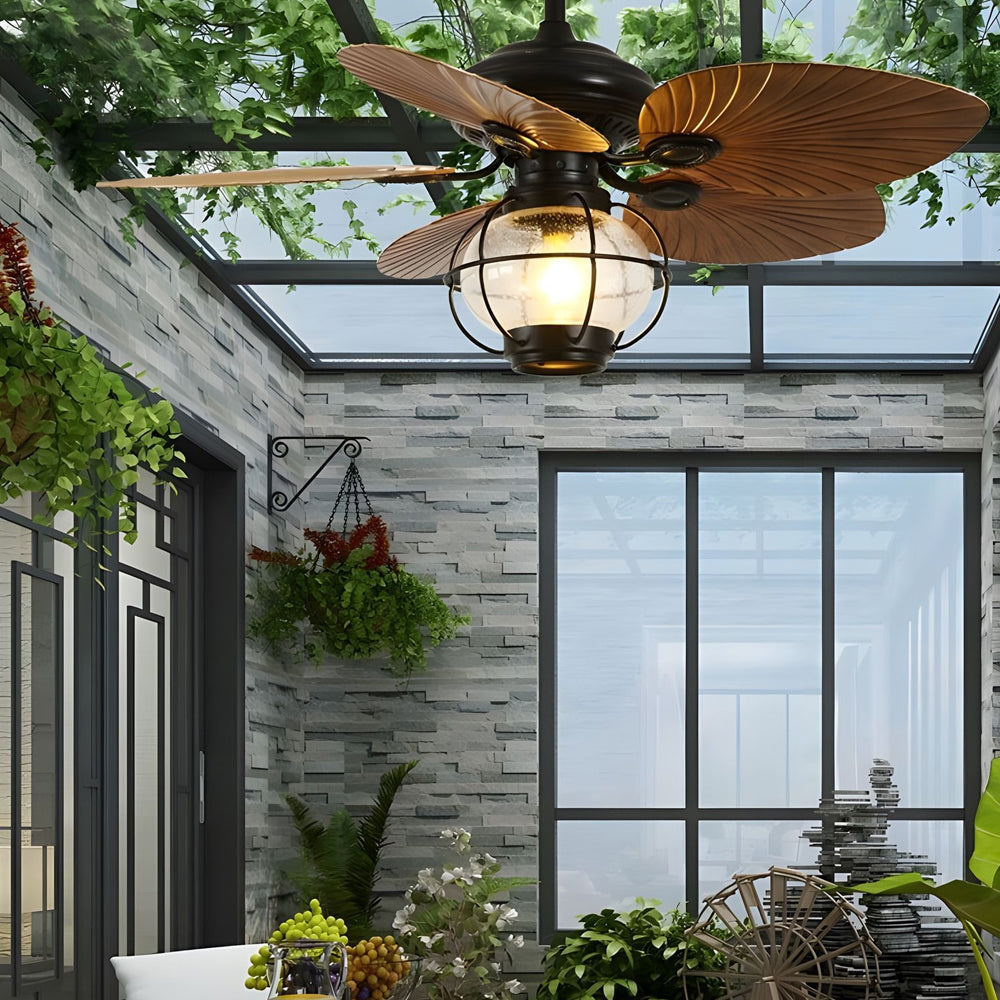- This Tropical ceiling fan light features five flying brown ABS blades that add vintage elegance to any room, the fan blades are finished with a rich brown hue and palm leaf shape that is both attractive and durable.