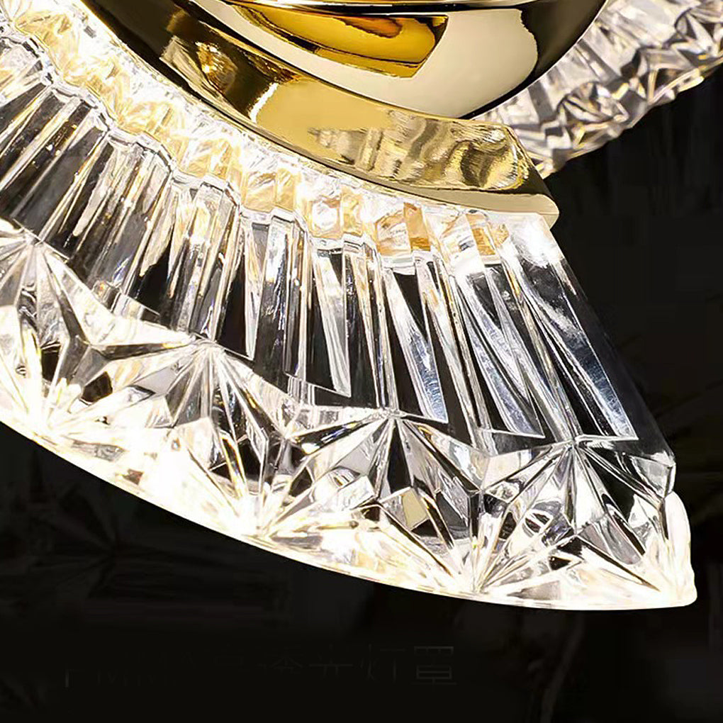 - This small chandelier is made of metal and acrylic and has been processed by electroplating and other processes to make it sturdy and durable. And the angle of its acrylic lampshade can be flexibly adjusted into different shapes to better decorate your home.