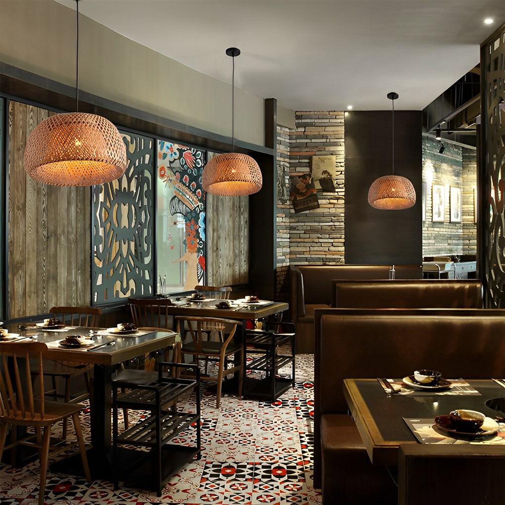 - Vintage hanging ceiling light fixtures with bamboo shades create a fresh look that will help you create the room of your dreams.