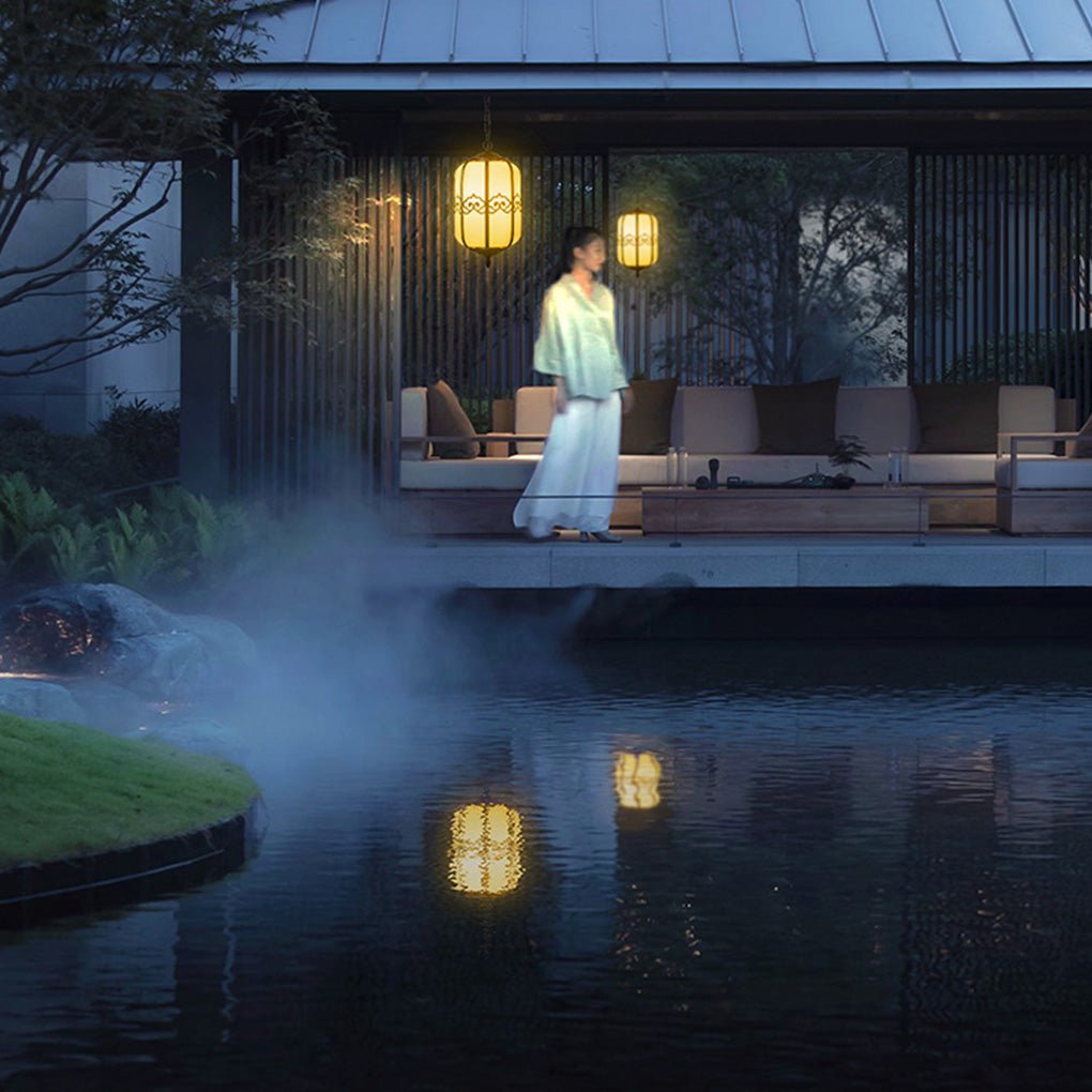 - This outdoor chandelier with thickened artificial marble-like lampshade, has high light transmittance and protects the internal light source. After the light is turned on, it can well set off the warm courtyard atmosphere.