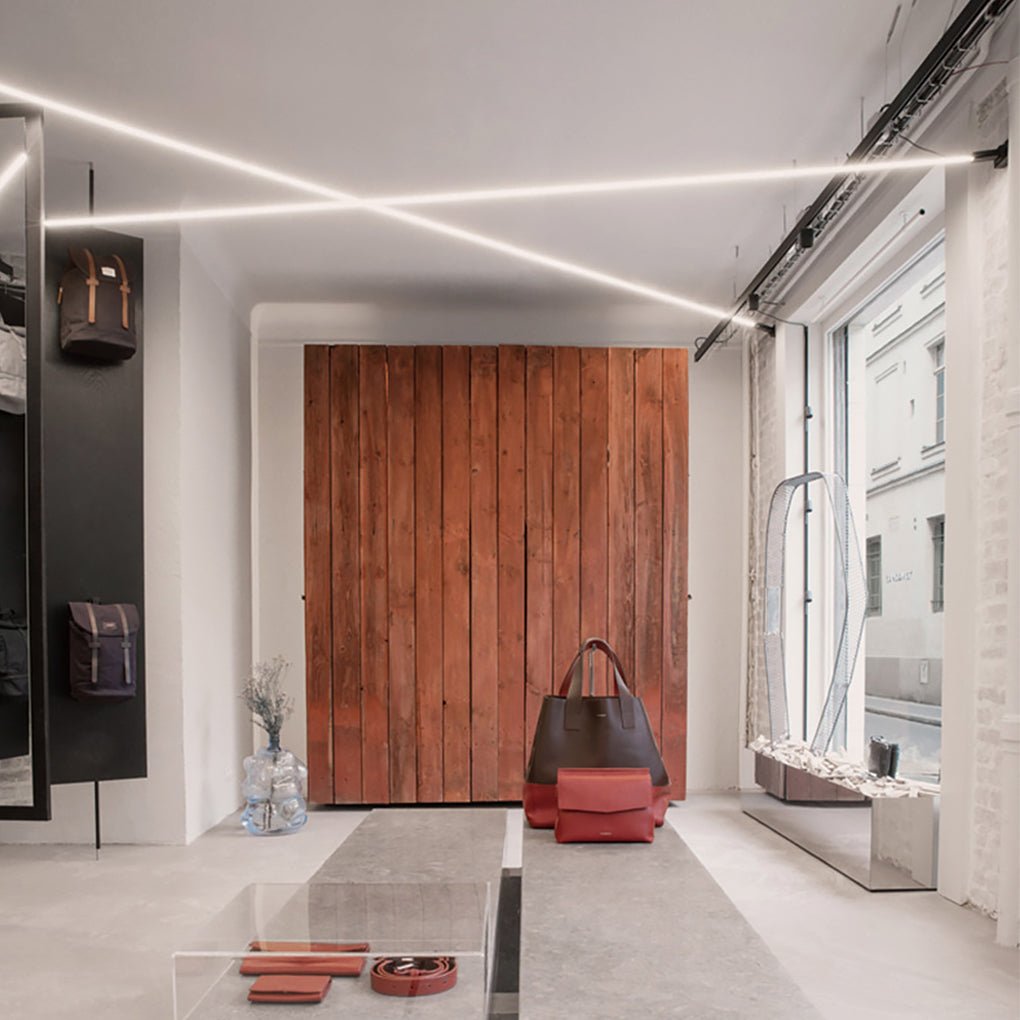 - This linear lamp perfectly embodies the aesthetics of geometric art. The minimalist line design enables you to install it anywhere, giving the space a very individual and distinctive artistic style.