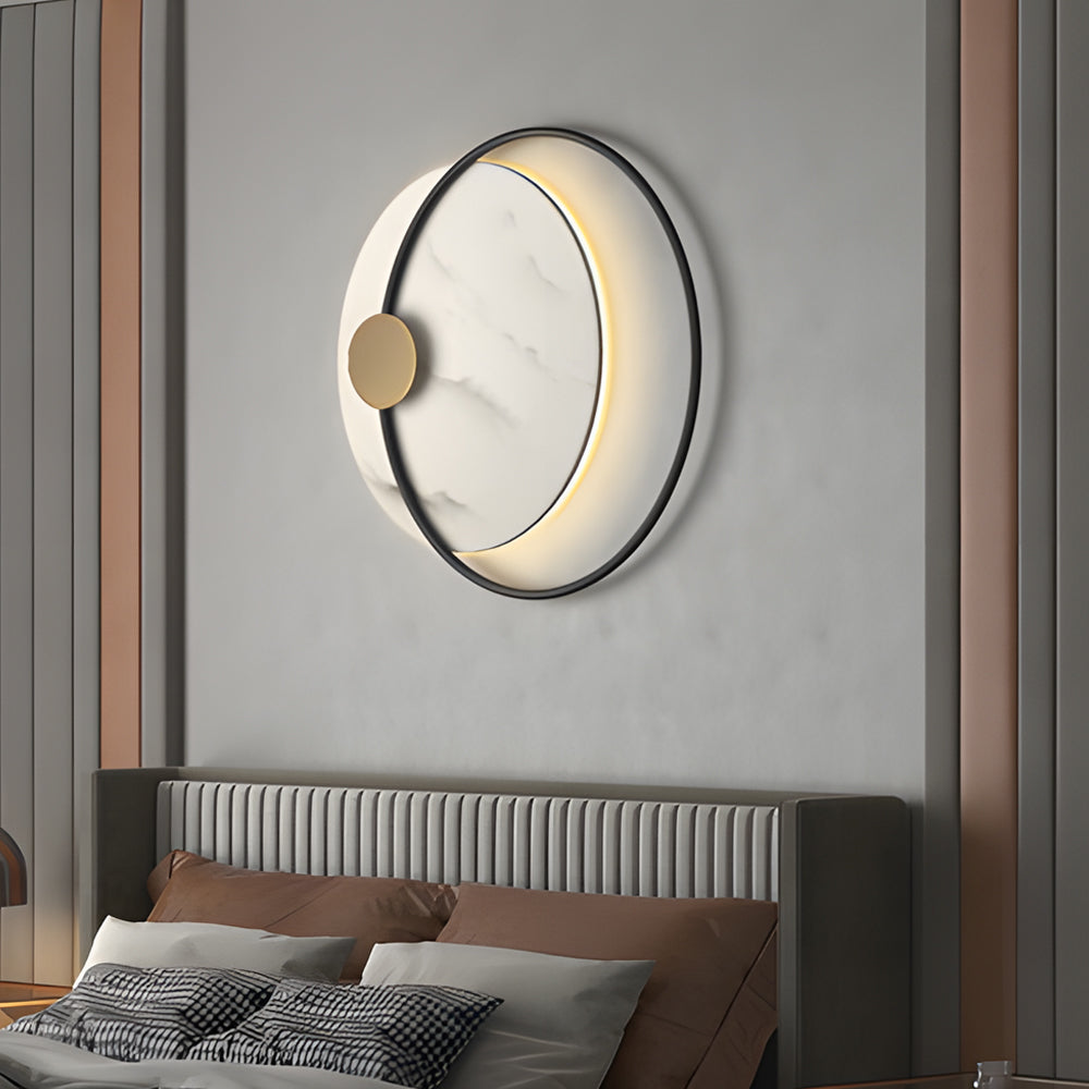 - This round marble wall lamp with a simple shape and full of artistic flavor. Its texture is natural and unique, and it is suitable for a variety of home decoration styles. It is an excellent choice for the bedroom, living room, dining room, entrance, study room, bedside and other spaces.
