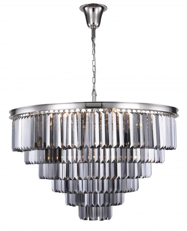 Bring the splendor of the ballroom into your home with a sparkling Sydney fixture. Stunning in foyers, dining rooms, or stairwells, the Sydney collection brings to mind the glamour of the Roaring Twenties. Features glimmering tiers of royal-cut clear, golden-teak, or Silver-shade crystals. In mocha-brown or polished-nickel finishes, this sturdy, yet delicate, chandelier will be the perfect centerpiece for any décor.