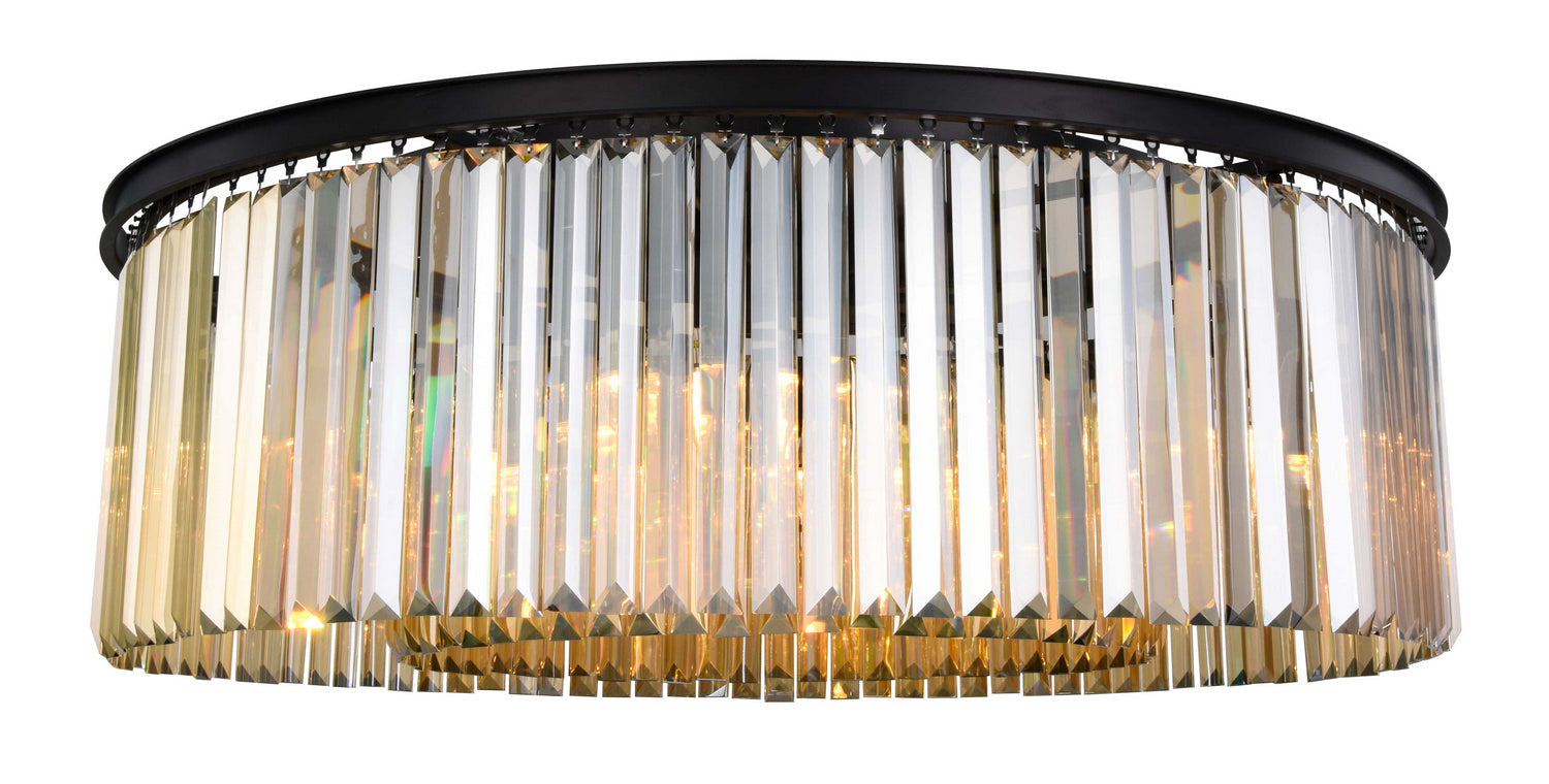 Timeless splendor and modern refinement are brought together in flush-mount Sydney fixtures. Dazzling in dining rooms, staircases, or hallways, the Sydney collection flaunts stunning tiers of royal-cut crystals in clear, golden teak, or Silver shade. A circular Matte Black or polished-nickel finished steel frame adds understated charm to this stunning flush-mount lamp.
