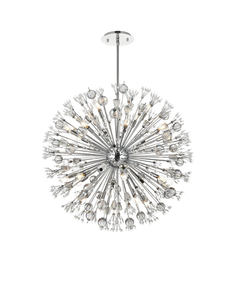 Like an explosion frozen in time, Vera collection hanging fixtures are suspended chaos. Clear large crystal balls and sprays of smaller crystals swirl amidst exposed candelabra bulbs (not included) balanced on dainty wires. A gleaming steel sphere forms the epicenter of the storm. A touch of savage beauty that easily compliments a kitchen, entryway, or bedroom. Sloped ceiling adaptable with a durable swivel could be mounted on vaulted or angled ceilings