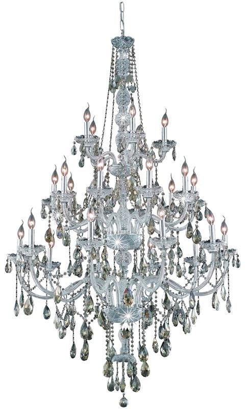 The spectacular chandeliers in the Verona collection are the height of elegance and style - and in this case, literally: These gorgeous fixtures tower to almost six feet high, and their impressive visual impact is further enhanced by a fabulous array of features and ornamentation. The intricate cut-crystal center columns support three tiers of graceful arms that hold 25 candelabra lights (not included) and crystal bobéches, along with draped crystal beads, balls, rings, and pendeloques. Available with a variety of finishes and many different types of crystal.