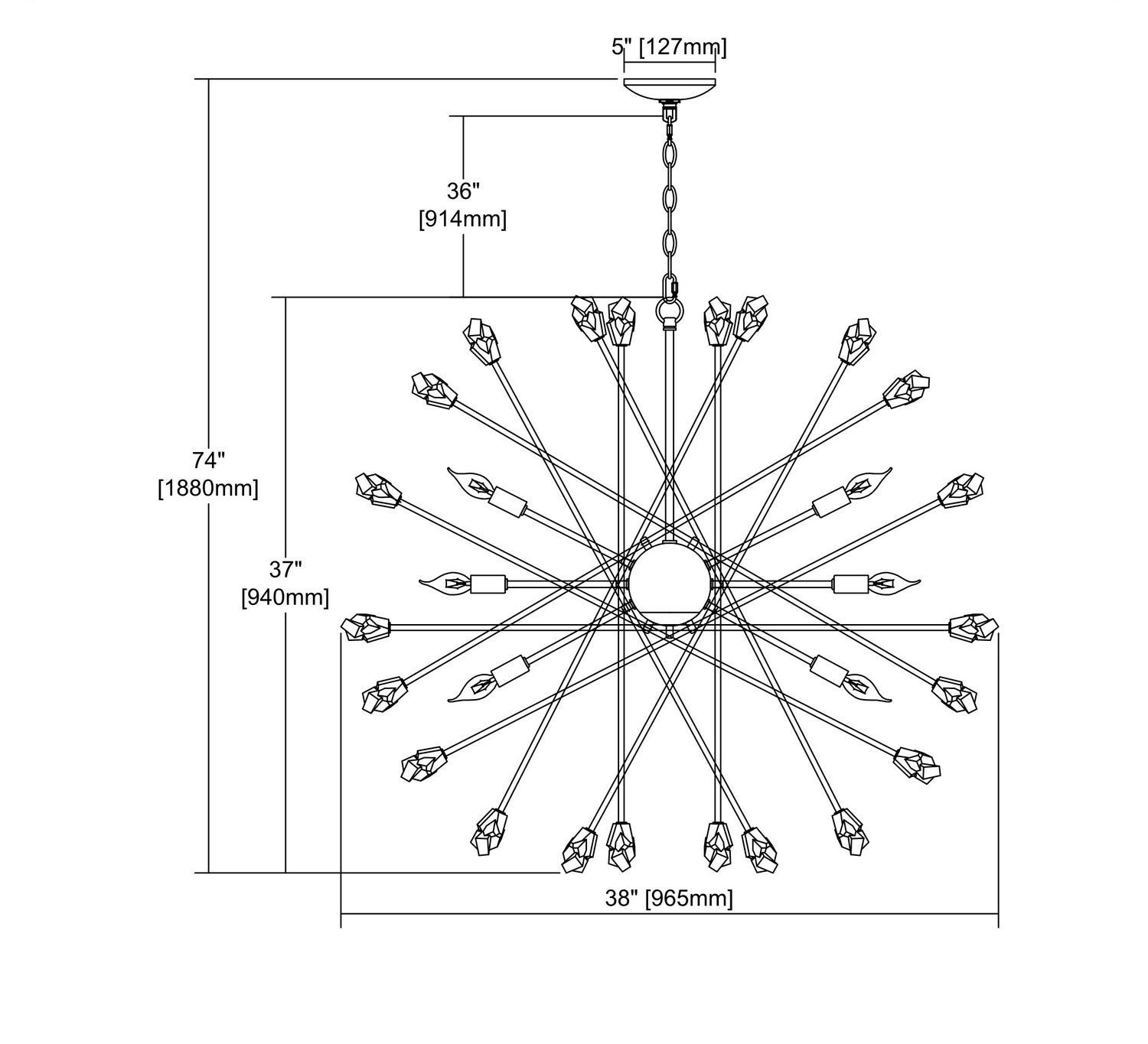 The Serendipity collection dazzles with a unique starburst design of randomly positioned spikes tipped with chiseled rock-shaped bubbled glass elements. The Matte Gold finish imbues a rich color tone into the glass endings.