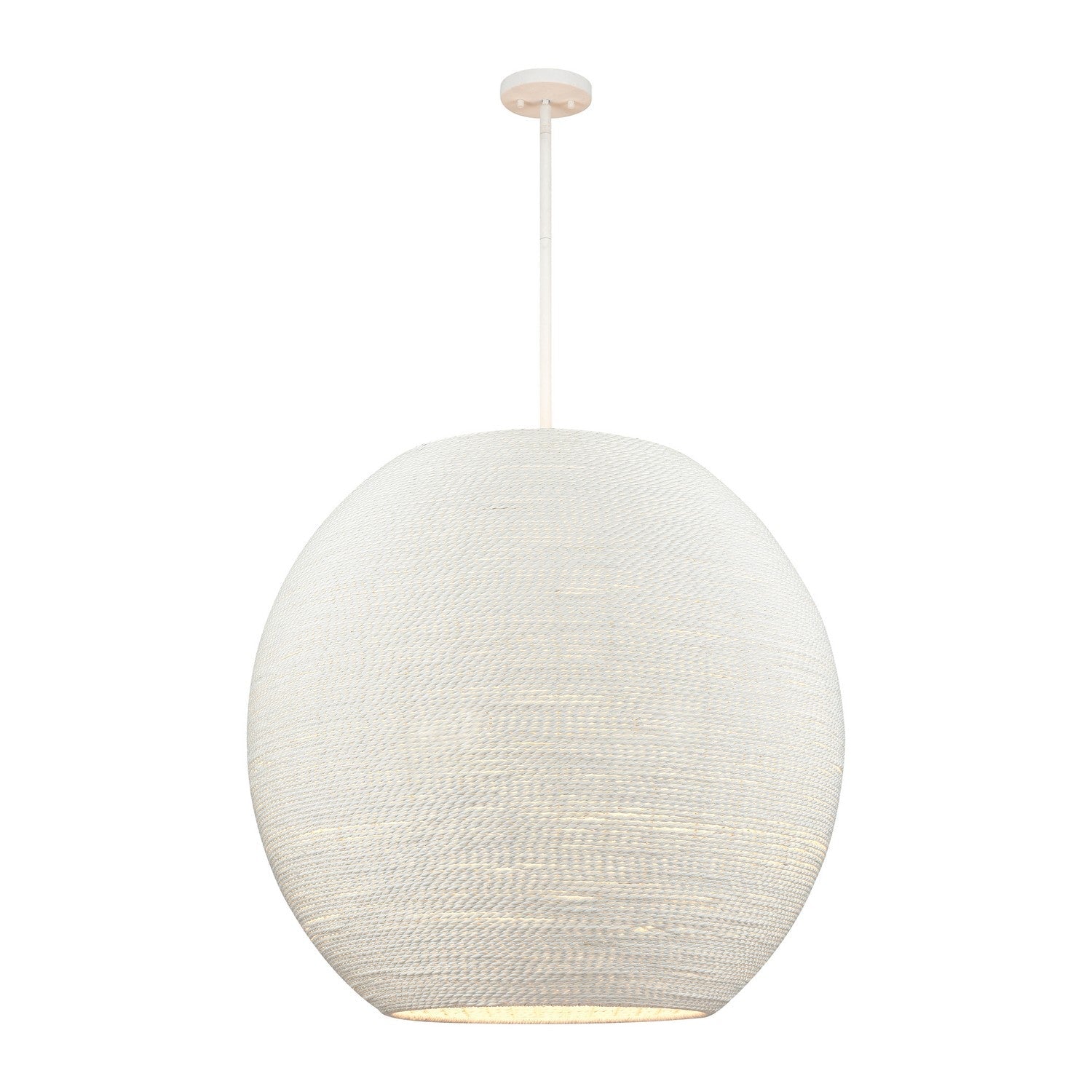 The Sophie collection features sculptural shapes made with braided paper rope which adds an organic texture and exudes a soft, diffused light. A white coral finish compliments the design.