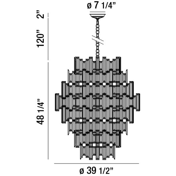 Overlapping prisms of amber glimmer within a chrome frame. The warm hues of the luxurious crystals amplify the inviting glow from the multiple lights within.