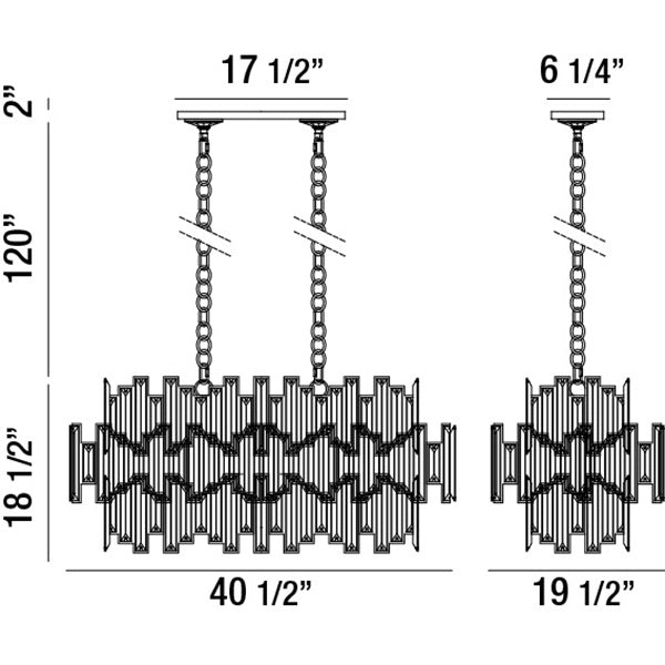 Overlapping prisms of amber glimmer within a chrome frame. The warm hues of the luxurious crystals amplify the inviting glow from the multiple lights within.