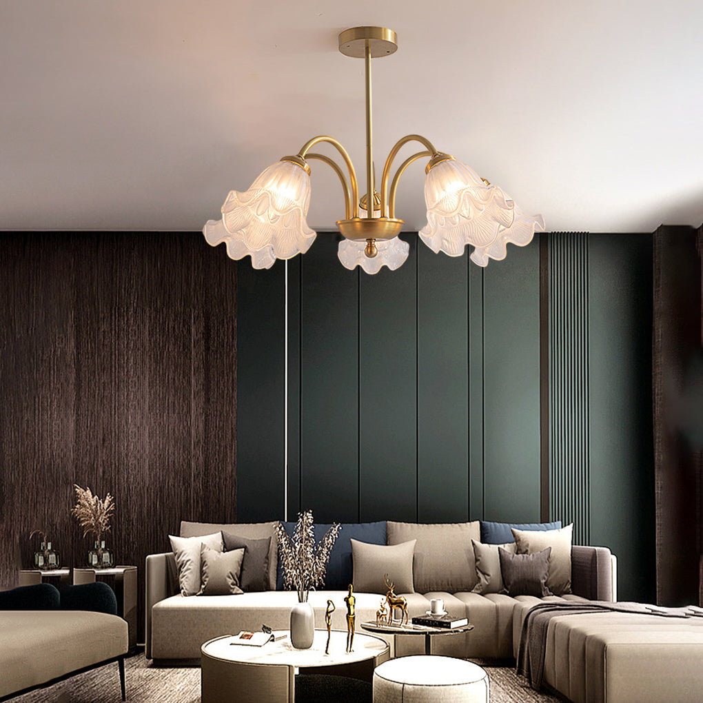 - This chandelier with some flower shape glass shades, which is unique and attractive. And they have exquisite workmanship and high light transmittance, which can easily create a warm and bright lighting environment for you.