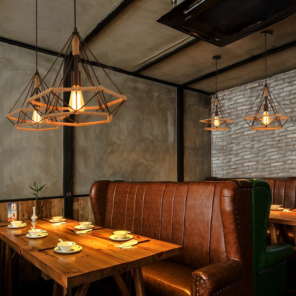 - This geometric pendant lamp is a great choice for adding a retro rustic look to your home decor, featuring a black exterior and geometric design.