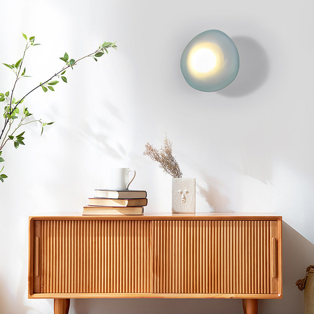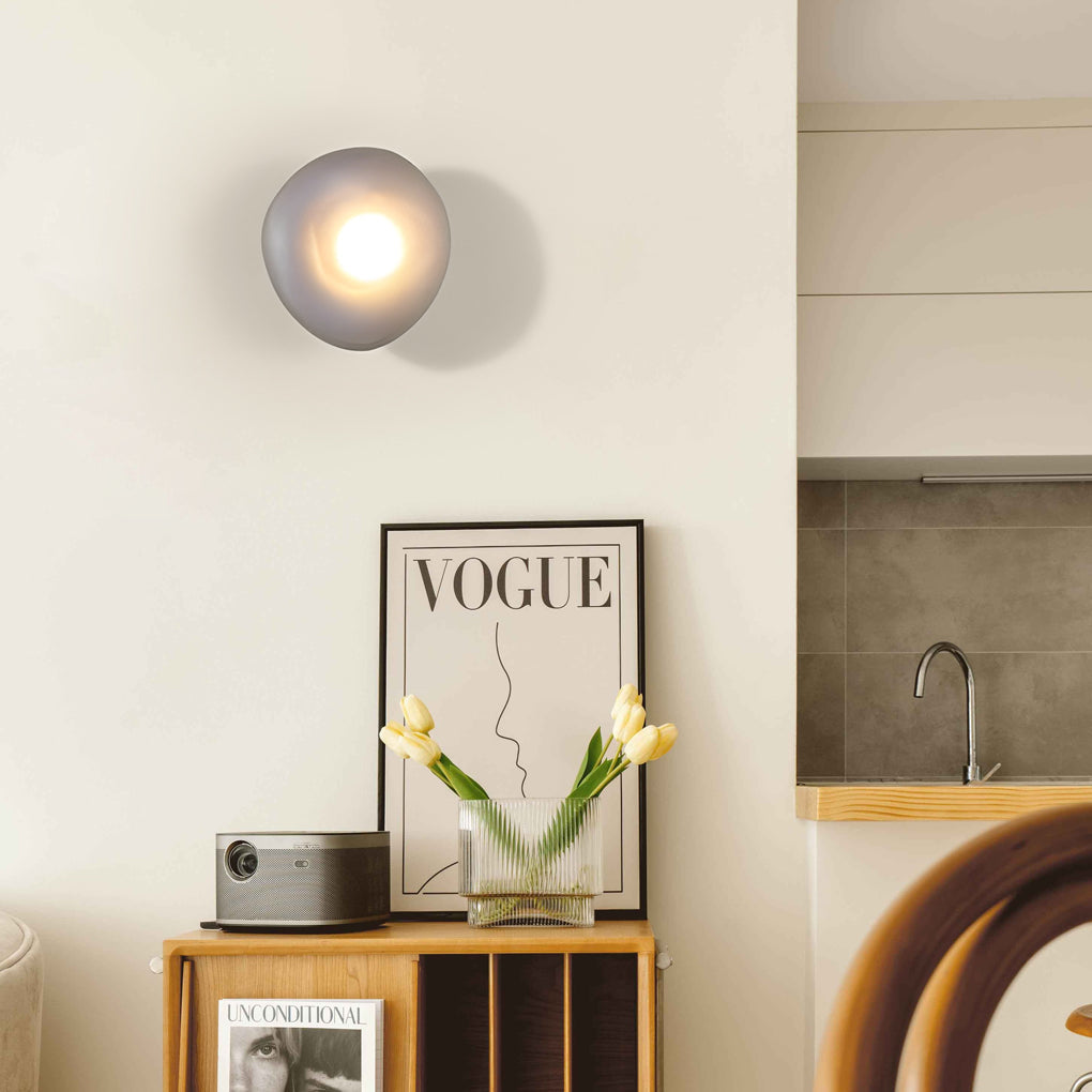 - This creative wall lamp is made of glass lampshade and iron material. And the glass lampshade has high light transmittance and different shapes. There are four wall lamp colors, gray, amber, blue and white, to meet the lighting and decoration of different scenes need.
