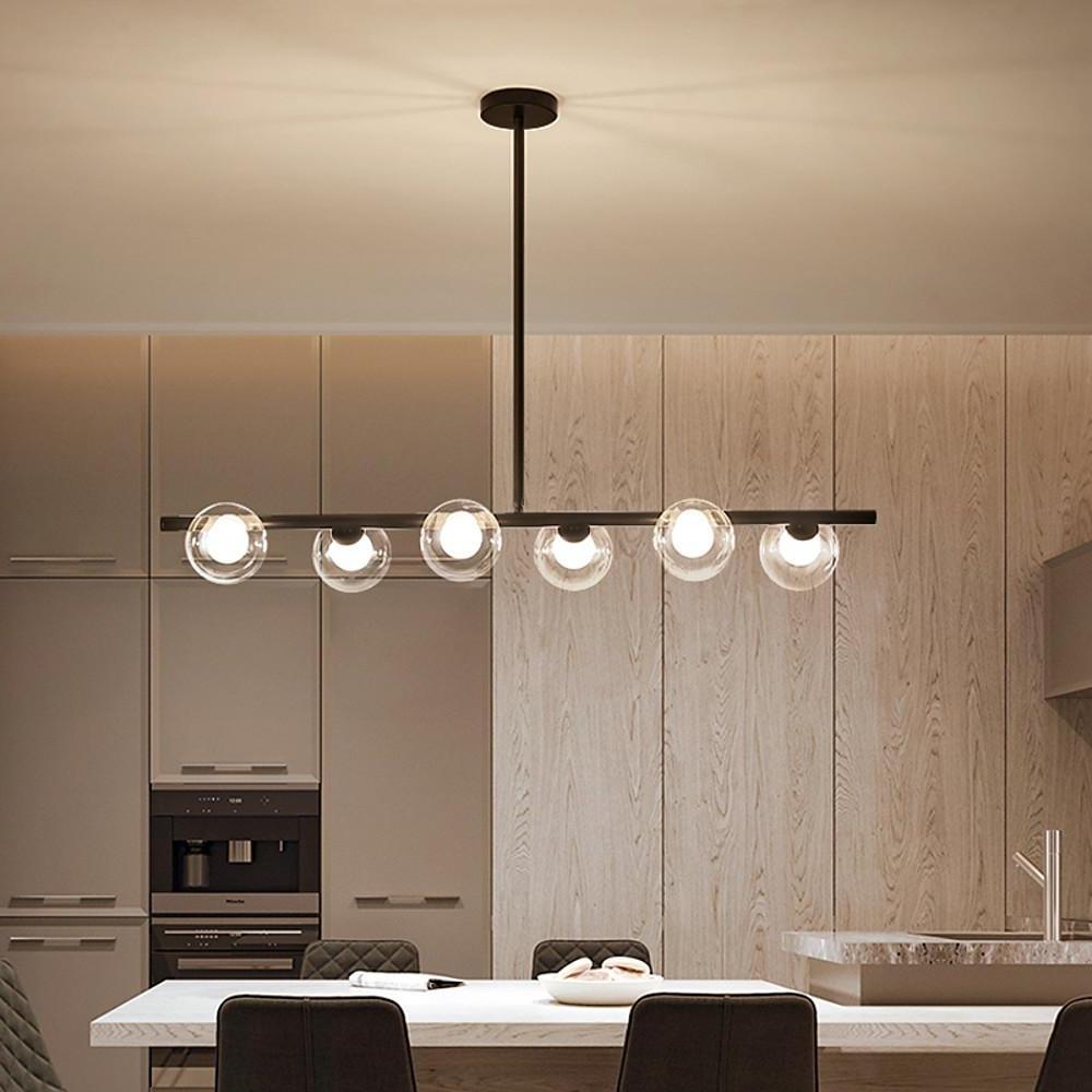 - The Nordic style ceiling lamp is composed of 6 transparent glass lampshades and metal rods. The shape is simple and exquisite, practical and beautiful, and the transparent glass lampshade makes the light emit a pleasant light.