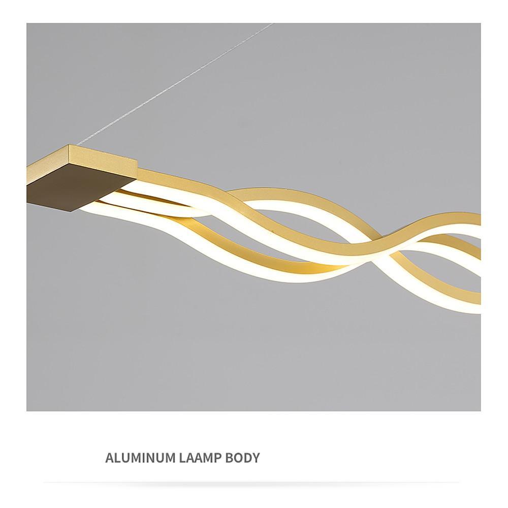 - Simple wavy shaped pendant light makes your home more stylish. The lamp body is made of aluminum and acrylic material, and the surface is painted to make the chandelier rich in texture.