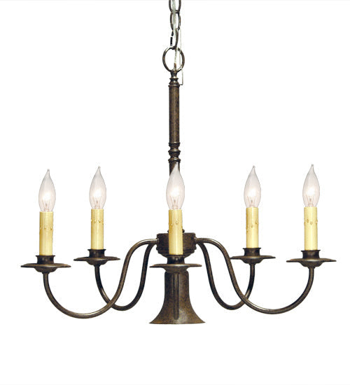 Graceful elegance is captured beautifully with Eden. This sophisticated chandelier is adorned with 5 Ivory faux candlelights with Customer supplied Candelabra lamps for beautiful ambient illumination which is complemented with a Customer supplied Downlight for functional lighting. The curved arms and hardware are featured in a warm Chestnut finish. Handcrafted in the USA, custom options include made-to-order sizes, finishes and designs. Dimmable energy efficient lamping options such as LED are available. The 22-inch wide chandelier is UL and cUL listed for dry and damp locations.