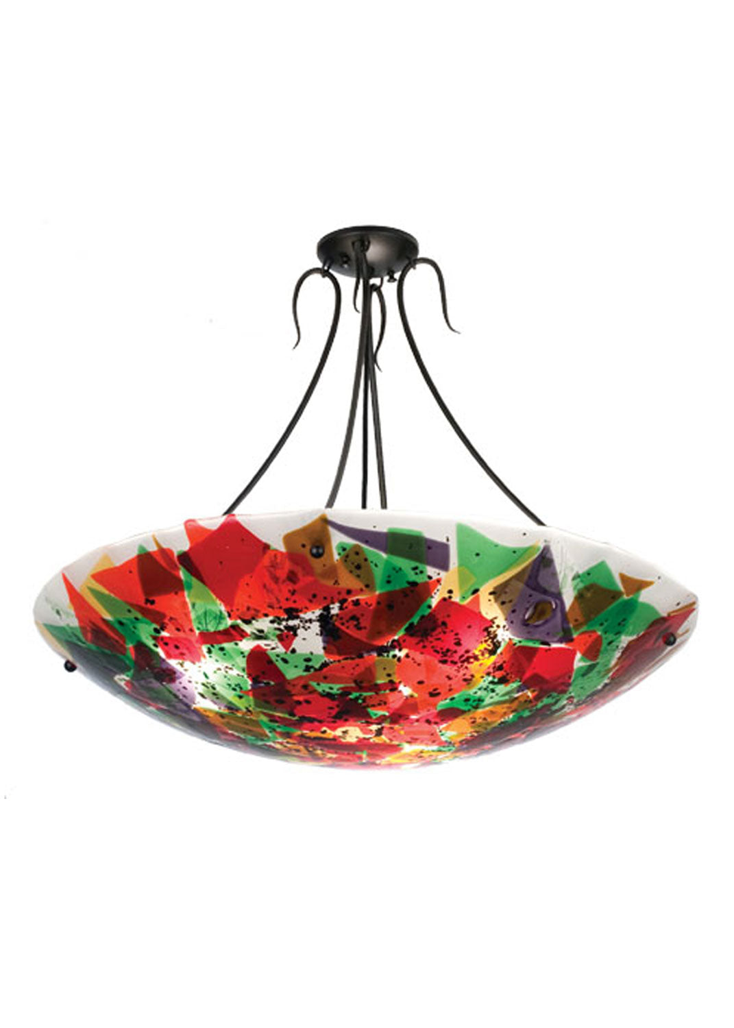Say molto bello to the Metro Fusion Duomo Colorito inverted pendant fixture, a hot dish scattered with rainbow of colored glass. The shade fused and formed in a hot kiln and suspended from hardware finished in Black powder coat. Designed and created by Meyda artists and craftsmen, a fun contemporary fixture for your pleasure.