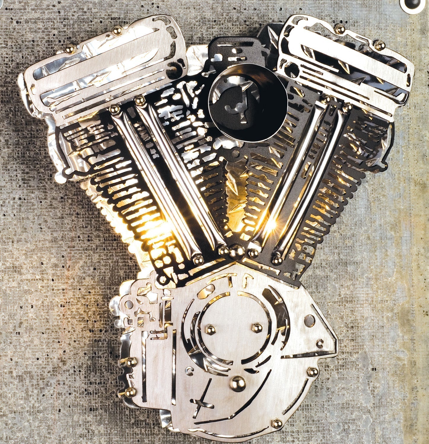 Burn up the road with this hot motorcycle engine finished in black. Cut from sheet metal, thie Easy Rider black wall sconce is hand crafted in the USA by Meyda artisans.