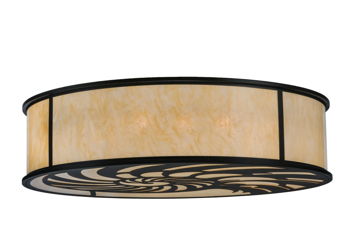 An alluring ocean Nautilus shell is depicted in a magnificent abstract design on the diffuser of this sea inspired ceiling fixture. This distinctive shade is hand crafted with enticing Sahara Taupe Idalight panels and complemented with accents and hardware finished in a stunning Blackwash. Handcrafted by highly skilled artisans in the Yorkville, New York manufacturing facility. Custom colors, designs and sizes offered. Dimmable energy efficient lamping such as LED available. UL and cUL listed for dry and damp locations.
