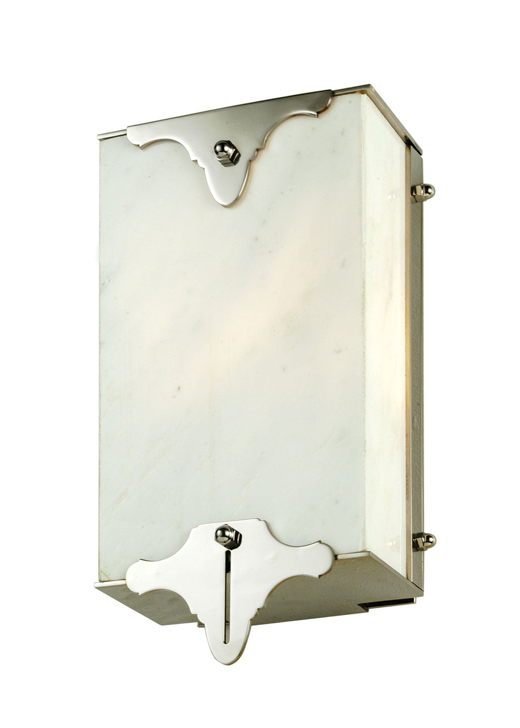 This wall sconce is designed with Polished Stainless Steel finished metal hardware. The shade is diffused with Natural White Onyx stone panels in a rectangular profile. Bring mondern style into your home or interiors with this elegantly simple wall fixture, which is custom crafted by the skillful hands of Meyda Tiffany artisans in Yorkville, New York.