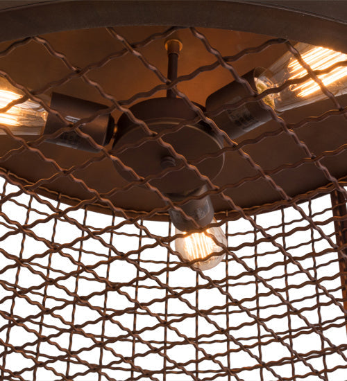Discover a unique decorative look and lighting design with this dramatic caged frame and exposed Edison lamp sprocket configuration displayed from within. The solid steel hardware and grill is featured in a stunning Vintage Copper finish. Handcrafted by Meyda artisans in the USA, this fixture is offered in a myriad of custom lamping options, as well as sizes, designs and finishes. The fixture is UL and cUL listed for damp and dry locations.