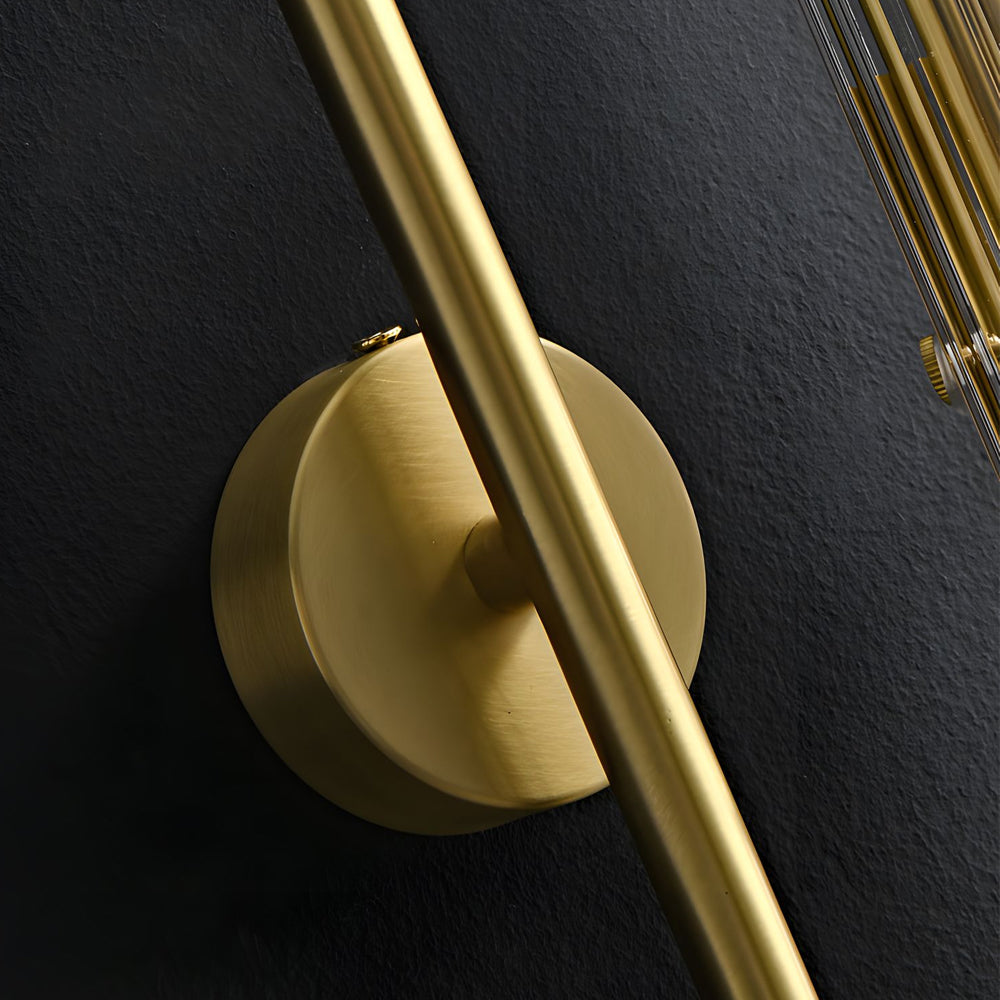 This stylish wall light features a sleek, contemporary design with its beautifully bent brass tubes and elegant, slender cylindrical glass shades. The lamp's clear glass shades provide a stunning contrast to the rich, golden brass, creating an eye-catching focal point on your wall. Each of the four G9 bulbs emits a warm, inviting light, enhancing the ambiance of your room without overwhelming it. This modern wall sconce blends clean lines with gentle curves to create a bold style that delivers eye-catching visual impact. Whether installed individually or as a pair of sconces, the Modern Luxury Wall Lamp is sure to enhance your interior decor with its chic and sophisticated design.