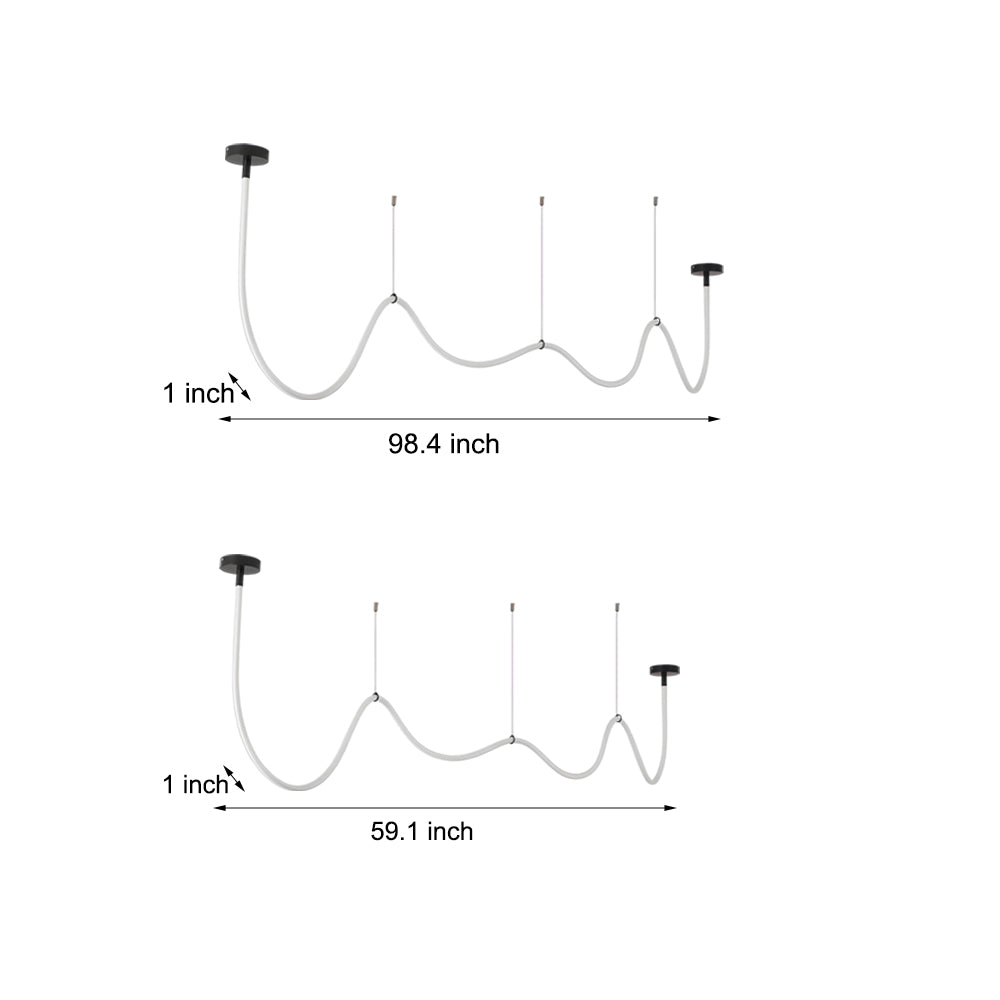 - This LED silicone rope pendant lighting is made from quality copper and soft silicone rope. Its stylish matte black finish adds a touch of understated luxury to any room, enhancing the overall aesthetic. The creative silicone rope adds a unique style to traditional chandeliers, providing design flexibility. There are two lengths of 59.05''/98.42'' for you to choose from, which can meet the decoration and lighting needs of different spaces and add a touch of personality to your space. With a 3-step dimming feature, you can effortlessly adjust the color temperature to suit your mood and ambiance. This LED pendant light is suitable for various home scenes, including the living room, dining room, or bedroom.