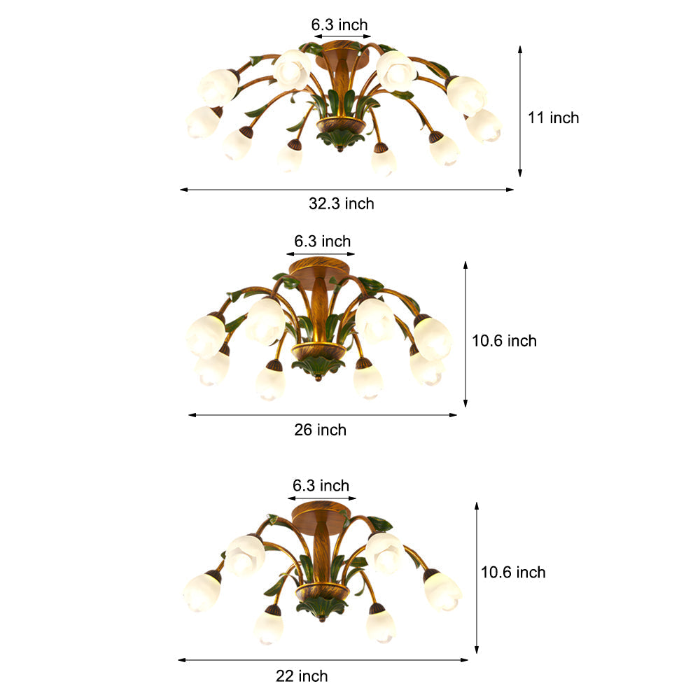 - And the combination of rustic design and flowers elements allows this ceiling lamp to bring nostalgic charm to any room. You can use it in bedrooms, dining rooms, living rooms, study rooms and other spaces to create a quiet and peaceful environment for you.