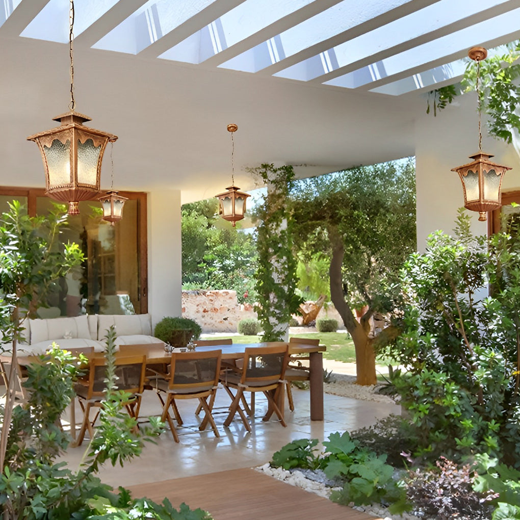 - This outdoor hanging light made of die-cast aluminum lamp body and glass lampshade is strong and rustproof, and has a long service life. This hanging light fixture can be installed indoors or outdoors and has a wide range of applications.
