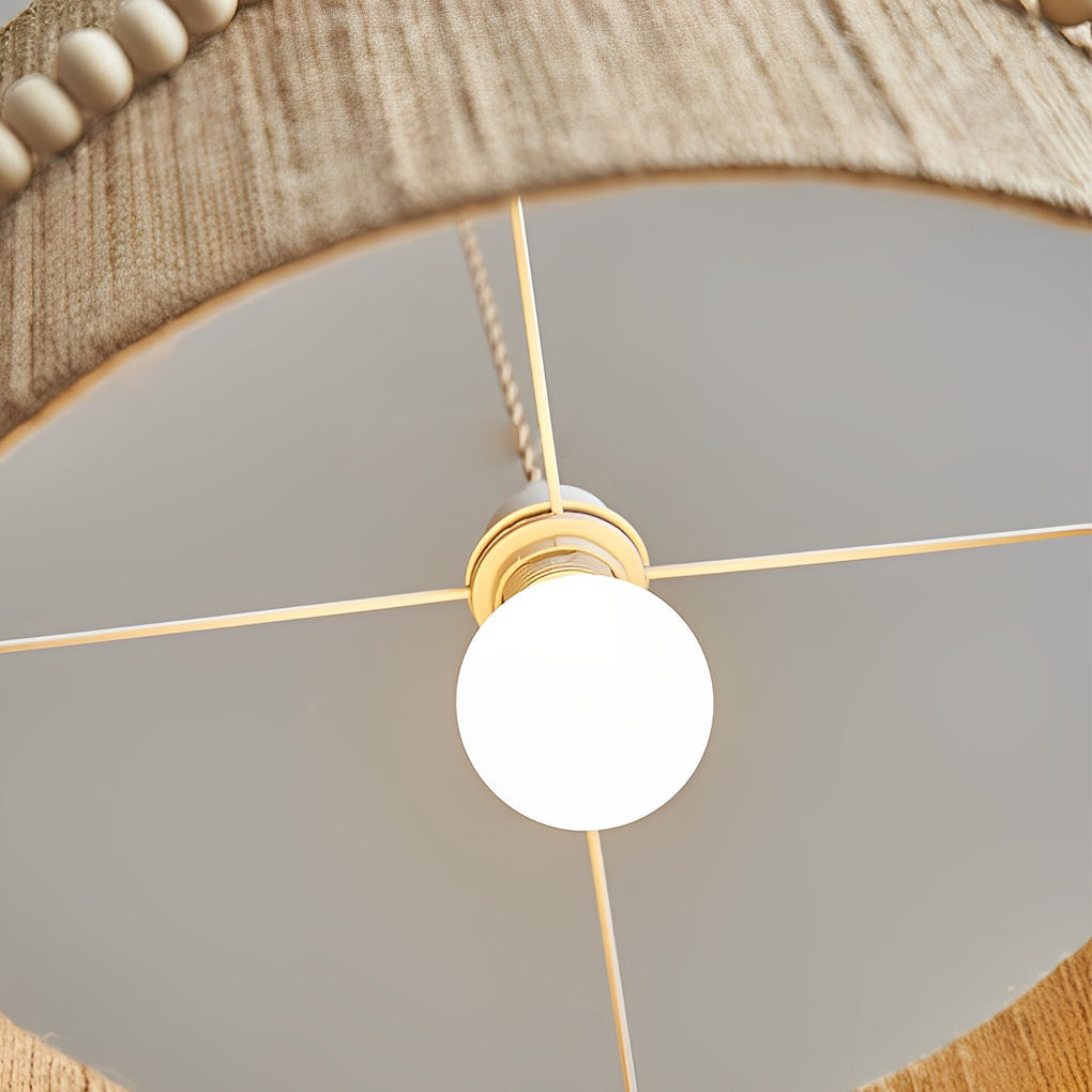 - This creative hanging lamp is made of selected natural hemp rope materials, creating a retro and original ecological texture. Decorated with wooden beads that look like tassels, this chandelier looks warm and delicate.