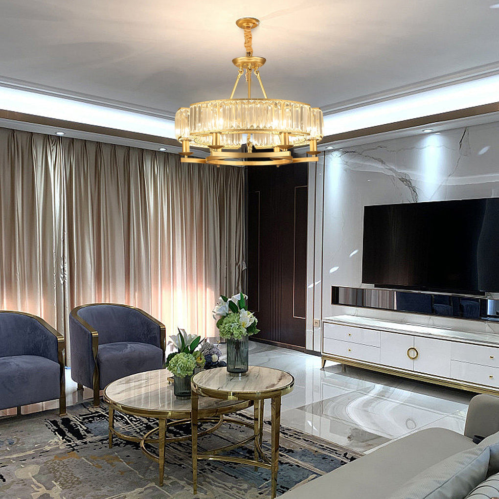 - This rustic crystal chandelier is inspired by natural farmhouse components, and the ingenious combination of metal and crystal lampshade creates a retro and elegant atmosphere.