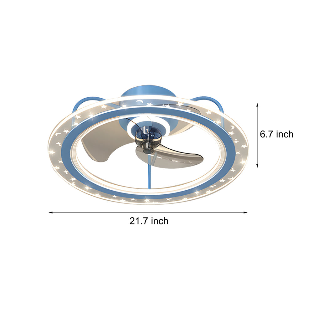 - This modern ceiling fans lamp is made of iron and acrylic materials. It has a cute design and exquisite workmanship, and it is available in pink and blue colors to meet different preferences and interior decoration matching needs.And the lighting of this ceiling fan and light has three color temperatures that can be switched, which can make the home bright and comfortable, and can also create different lighting atmospheres for you to create a comfortable home atmosphere.This fans ceiling with lights is easy to install, safe to use and durable. It can be used in bedrooms, children's rooms, and rooms with low ceilings.