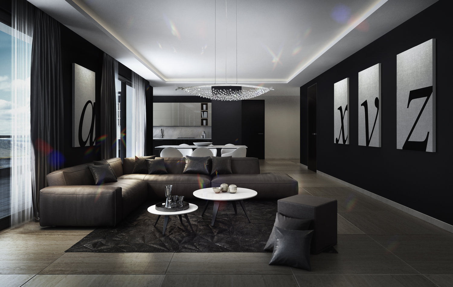 Brilliant crest shapes grace any minimalist room with their feather-light presence. A straightforward trio of cables affix to a sleek crossbar and layer industrial ease with the intrigue of a net sprinkled with up to 400 Swarovski crystals. This style amplifies the energy of a room with a deliberately simple design that accentuates any home's exquisite qualities.