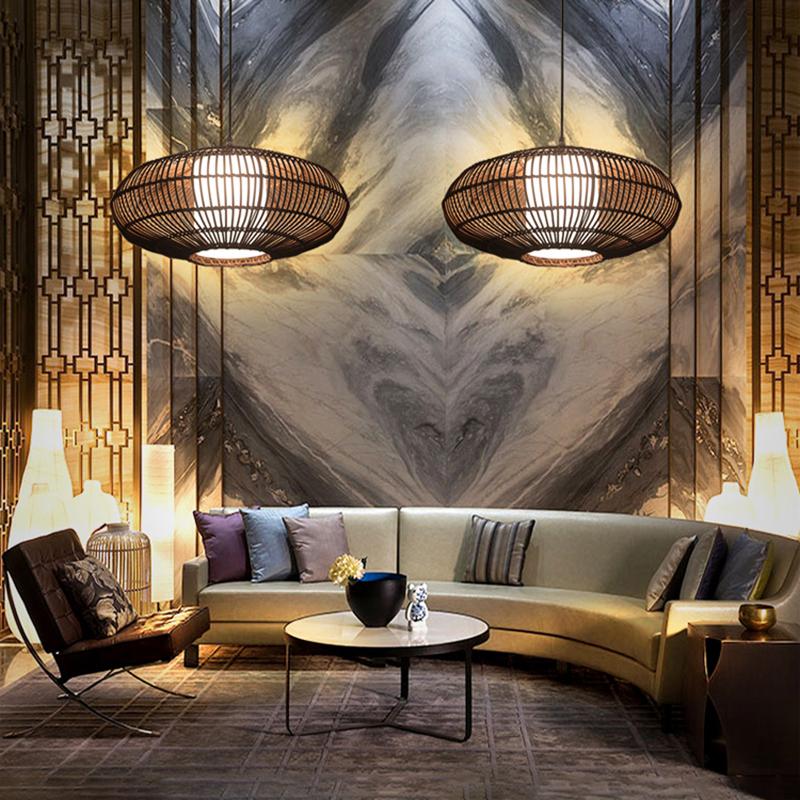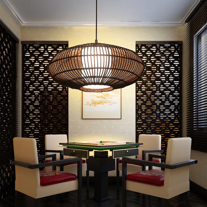 - An intriguing pendant light, that is totally surrounded with the dark brown bamboo sticks that give it this powerful authoritative stance. What is interesting about it is the light that it holds.
