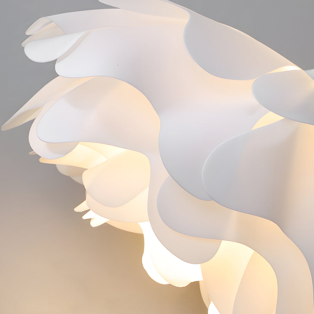 - The Acrylic Flower Pendant lightning Lamp reflects polished modern design with its clean lines, minimalist form, and magnificent flower decorations. The modest yet intriguing design of Modern White Ceiling Pendant Light blends well into any décor, bringing a touch of luxury to your living area.