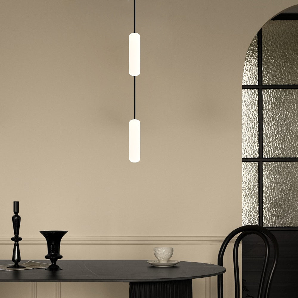 - The white long tube Cluster Pendant is a hand-blown frosted PE pendant with a refined cylinder shape and subtle metal accents. Inside the tube is an LED light that offers bright, even light in all directions.